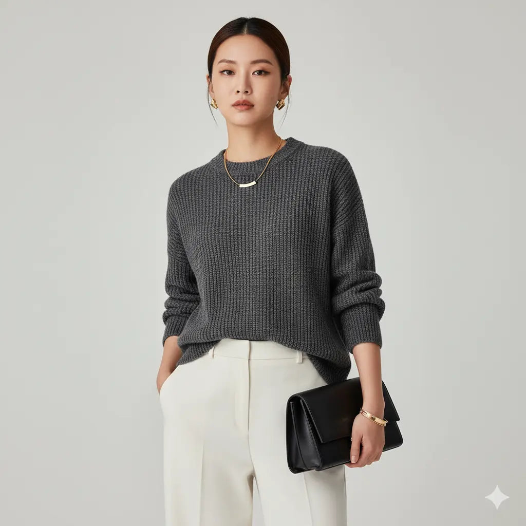 “Kain knitwear-nya halus banget, nggak bikin gerah. Cocok dipakai di ruangan ber AC, keliatan stylish tanpa usaha berlebih.”