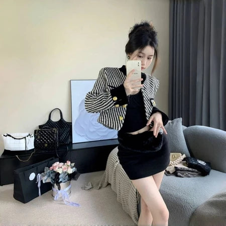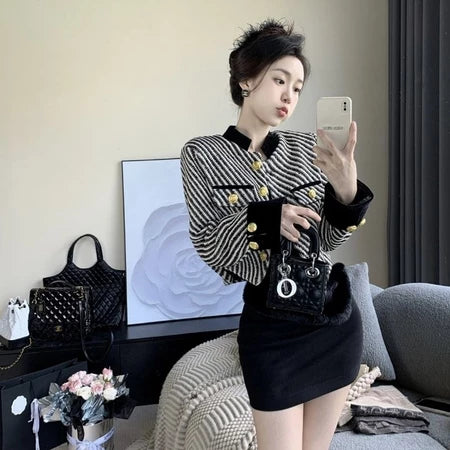 Hadirkan pesona elegan dalam setiap langkah dengan Lorentis Premium Tweed Striped Elegant Blazer Jacket. Dirancang dari bahan tweed berkualitas, blazer ini memberikan kesan mewah yang klasik namun tetap modern. Motif garis elegan membuatnya mudah dipadukan baik untuk gaya kasual berkelas maupun tampilan formal yang stylish.